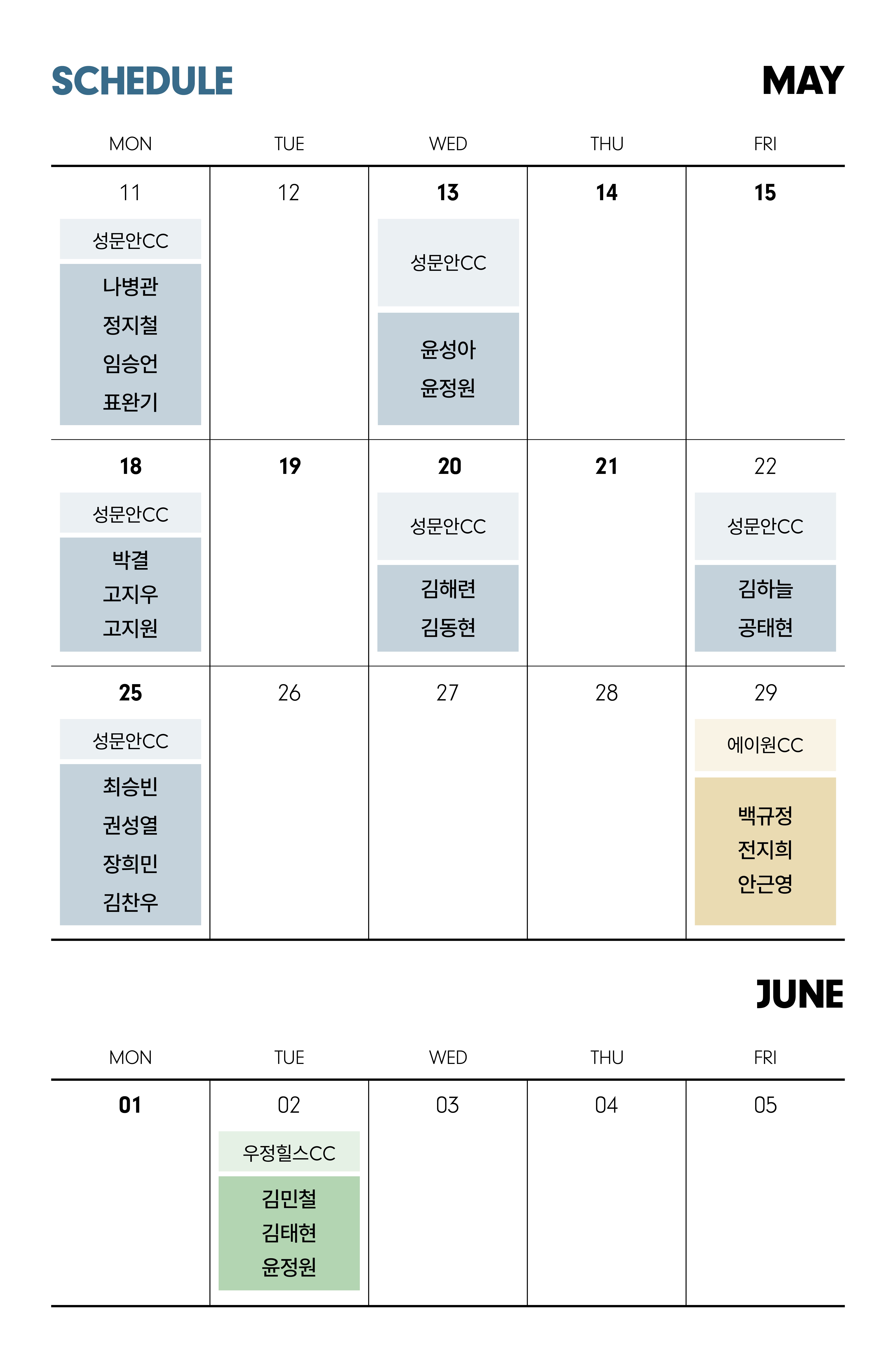 [장소] 성문안CC, 우정힐스CC, 에이원CC (장소 변동 가능)